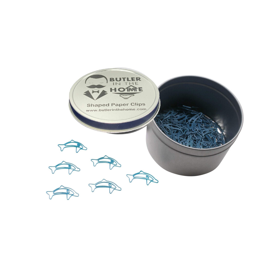 Butler in the Home 100 Count Dolphin Shaped Paper Clips Great for Paper Clip Collectors or Office Gift - Comes in Round Tin with Lid and Gift Box (Tea