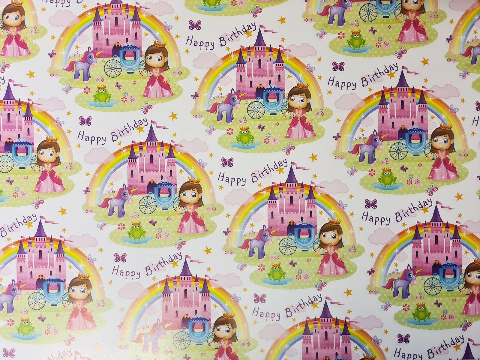 2 Sheets Gift Wrap Wrapping Paper Happy Birthday Princess Castle Rainbow Unicorn