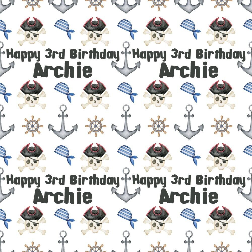 Pirate Skull Crossbones BIRTHDAY Personalised Gift Wrap Wrapping Paper present