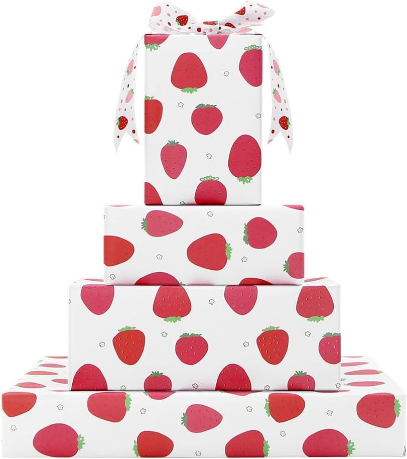 Strawberry Wrapping Paper, Red and White Strawberry Gift Wrap Paper for Birthda