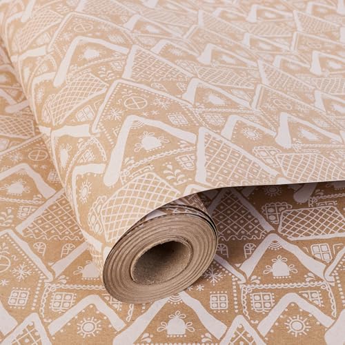 HBell Christmas Wrapping Paper Roll,43cm x 15m Kraft Christmas Wrapping Paper,Brown Gift Wrap paper for Xmas Gift Wrap,Birthday,Holiday,New Year (white house)