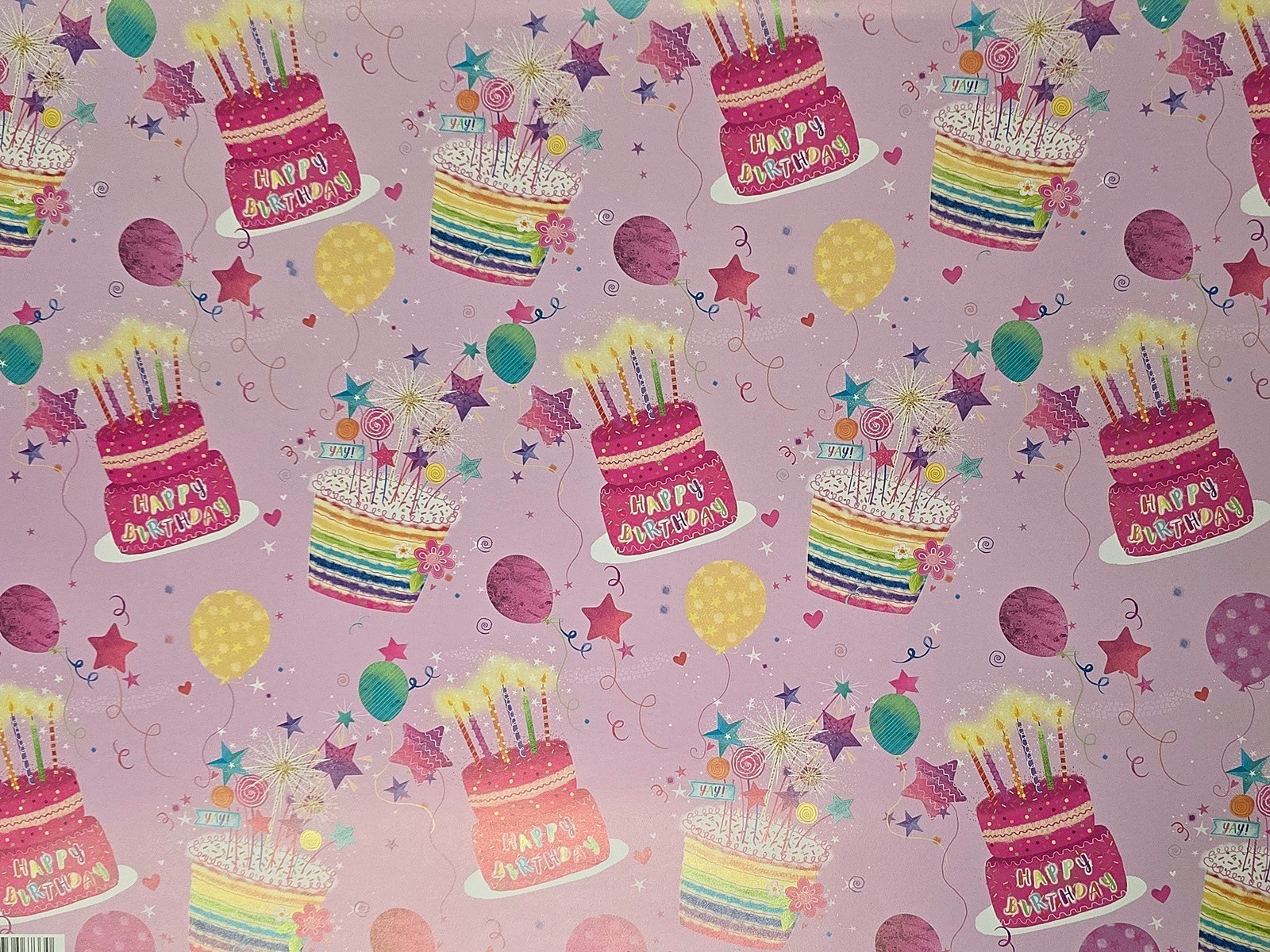 2 x Sheets of Gift Wrap Wrapping Paper Happy Birthday Pink Cake Balloons Girls
