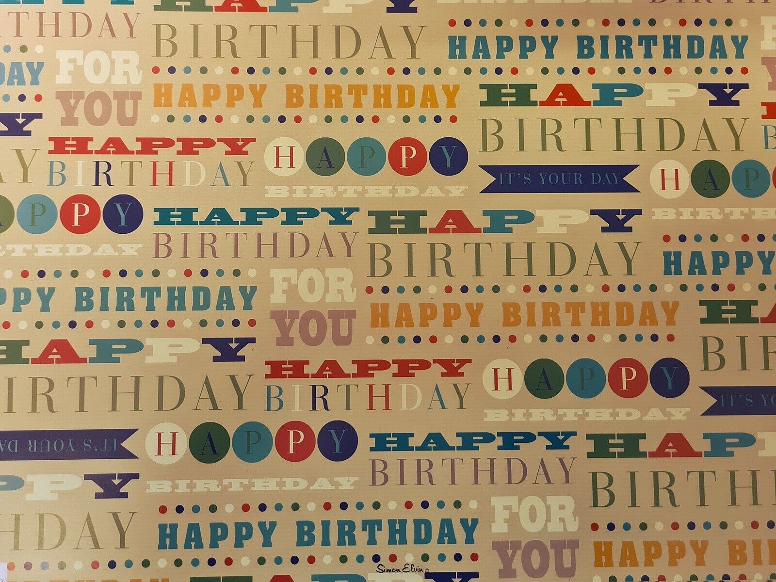 2 Sheets Gift Wrap Wrapping Paper Happy Birthday Beige Multi Colour Text Fun