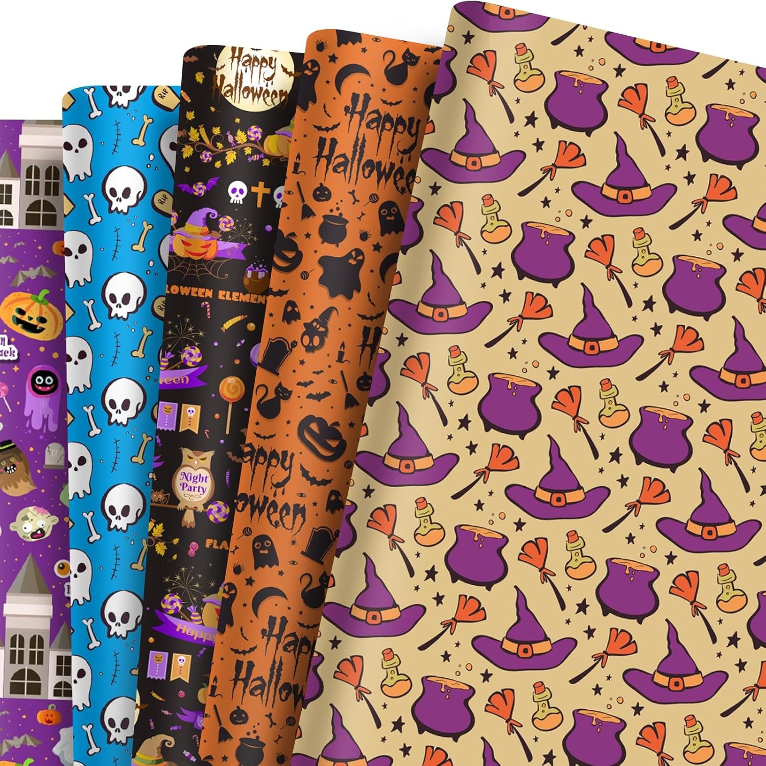 10 Sheets Halloween Wrapping Paper, 20x27in Gift Wrap Paper Boo Patterns Wrappi