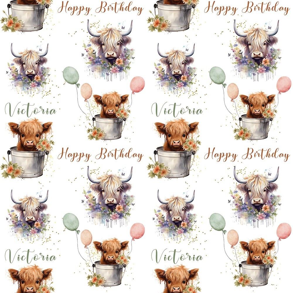 Highland Cows Cow Birthday Gift Wrap wrapping Paper For Him Her Present