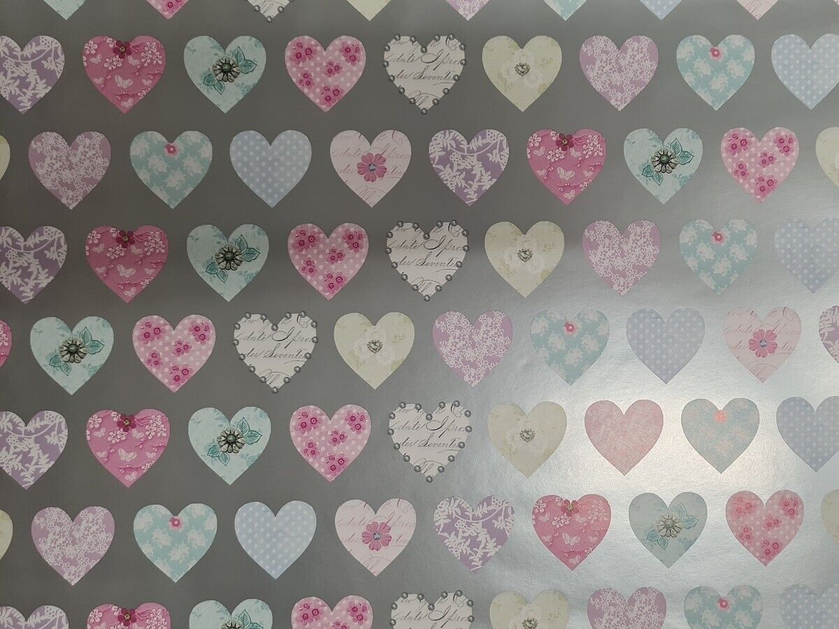 2 Sheets Gift Wrap Wrapping Paper Any Occasion Silver with Hearts