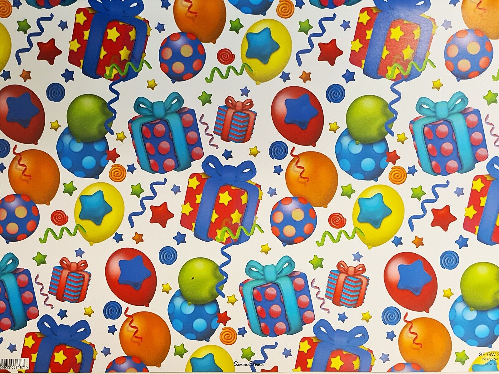 2 Sheets Gift Wrap Wrapping Paper Any Occasion Balloons Gifts Streamers Stars