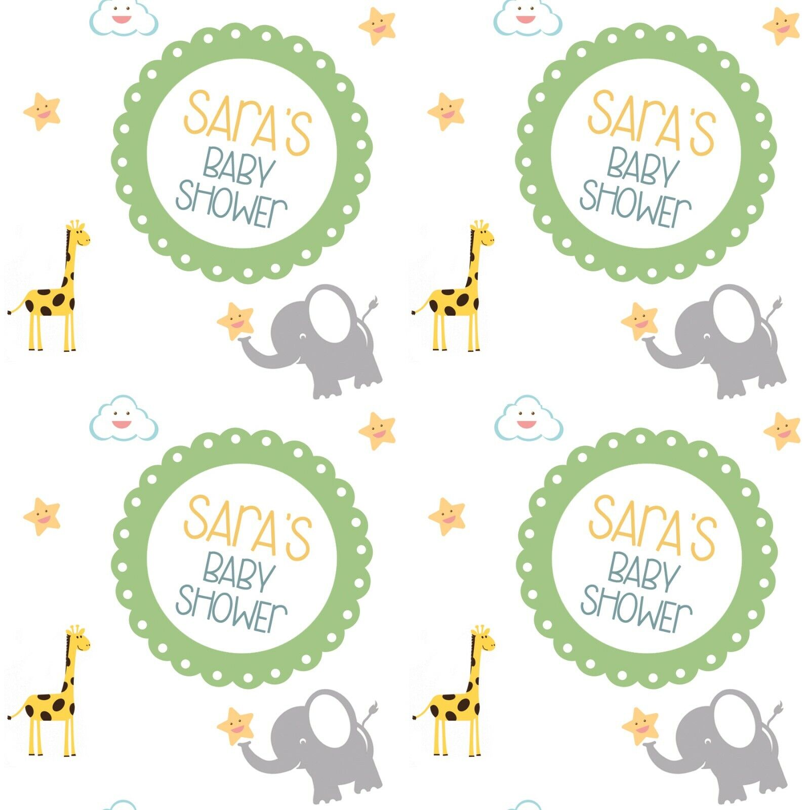PERSONALISED BABY SHOWER GIFT WRAPPING PRESENT WRAP PAPER ELEPHANT MINT WRAP