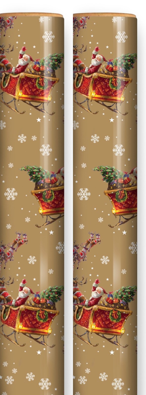 8m (2x4m) Traditional Christmas Gift Wrap Paper Roll - Gold with Santa in Sleigh