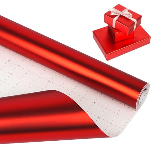 HBell Red Wrapping Paper Roll, 43cm x 10m Pearly-Lustre Gift Wrap Paper,Dual-Sided Wrapping paper for Birthday,Wedding,Baby Shower,Christmas,Party,Valentine's Day