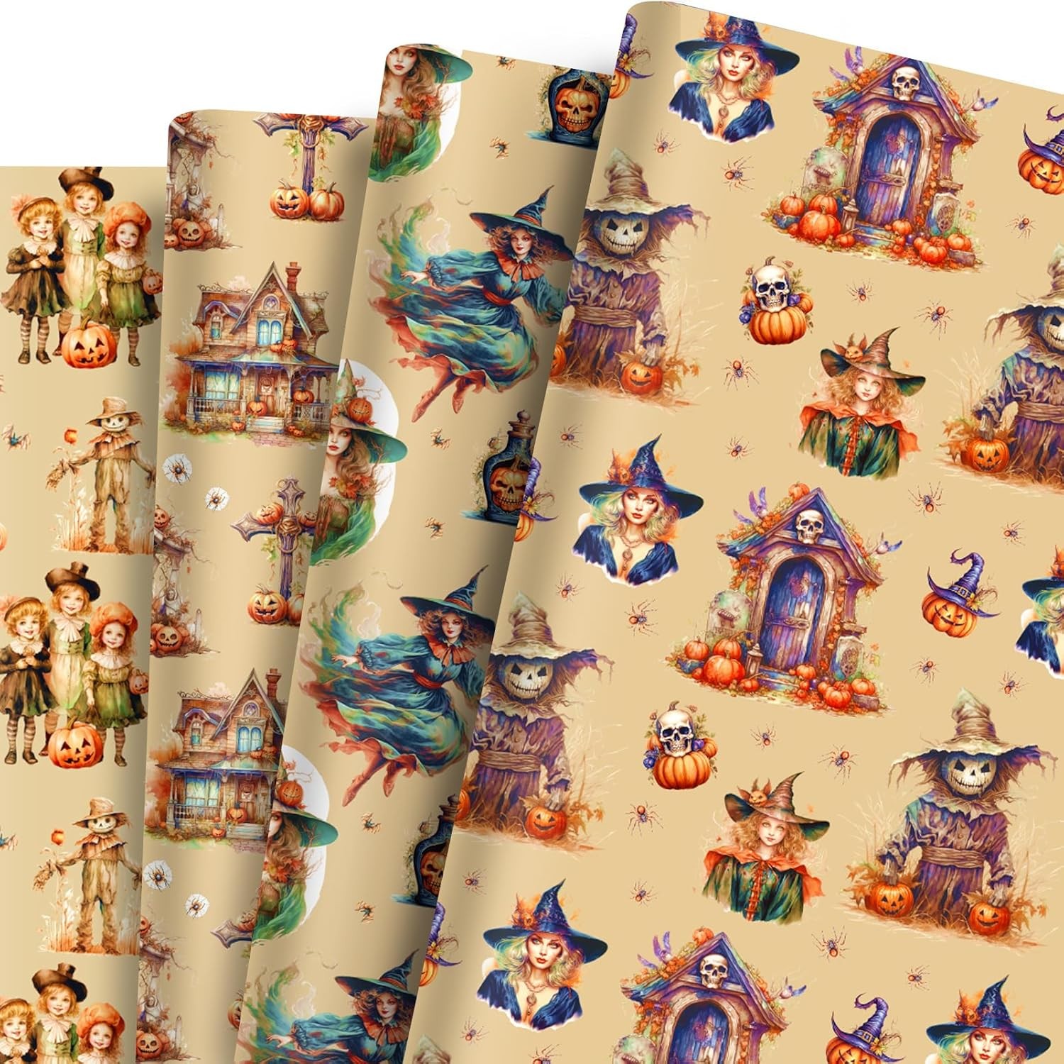 8 Sheets Halloween Wrapping Paper, 20x27in Gift Wrap Paper Boo Patterns Wrappin
