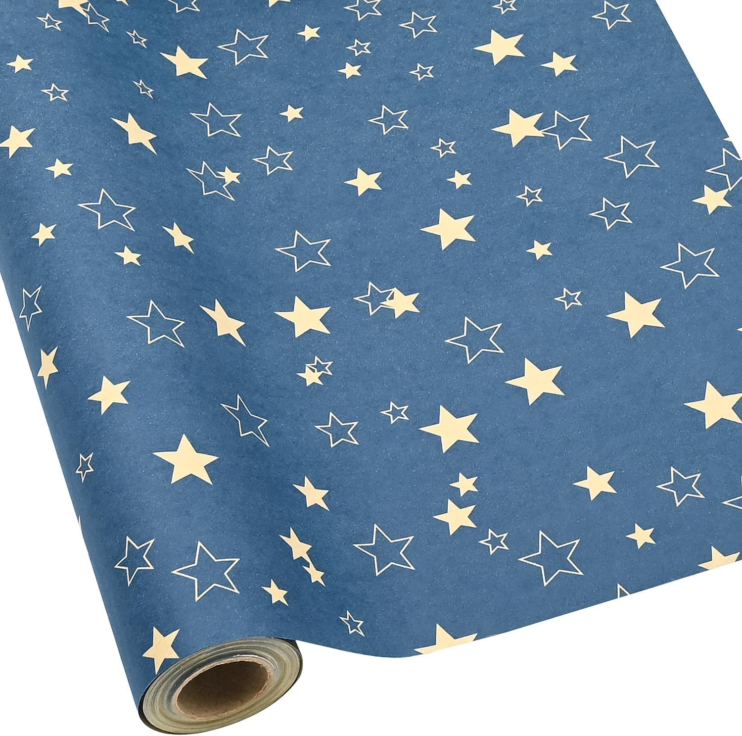 FMDPZUP 43cm*15m Blue Star Wrapping Paper Roll, Blue Xmas Gift Wrap Paper for P