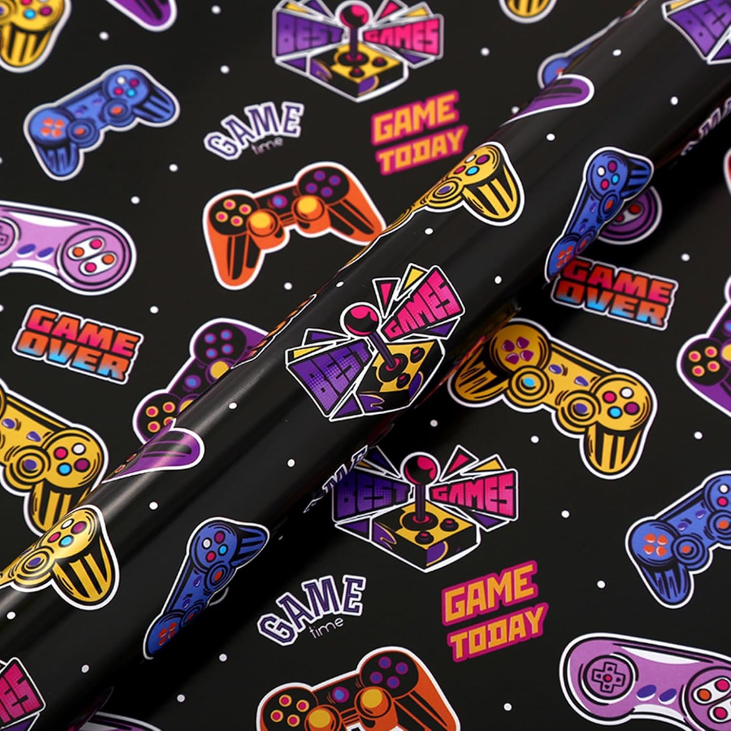 4 Sheets Gaming Wrapping Paper, 70 x 50cm Game Controller Gift Wrap Paper Boys