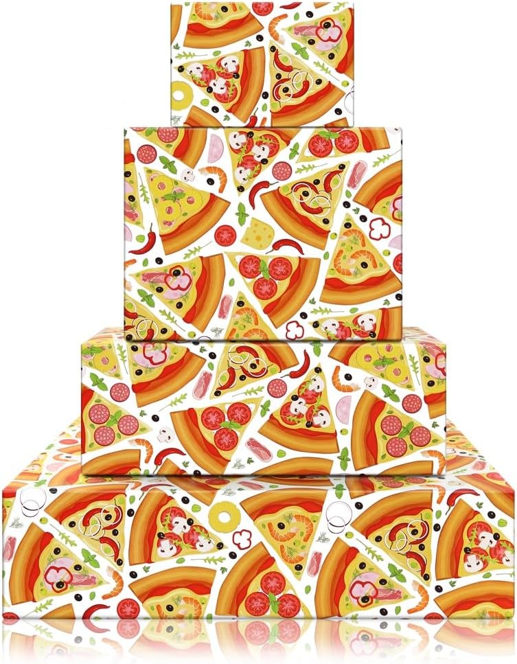 4 Sheet Pizza Gift Wrapping Paper,Folded Sheets Pizza Printed Gift Wrap Paper F