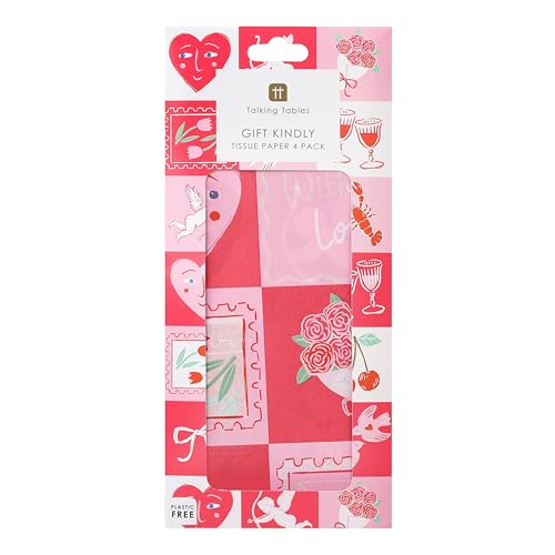 Talking Tables 4 x Valentines Tissue Paper Decorative Galetines Gift Wrap Paper Featuring Love Icons for Romantic Gifting Weddings Valentine Presents Party Bags Craft Wrapping and Celebration Styling