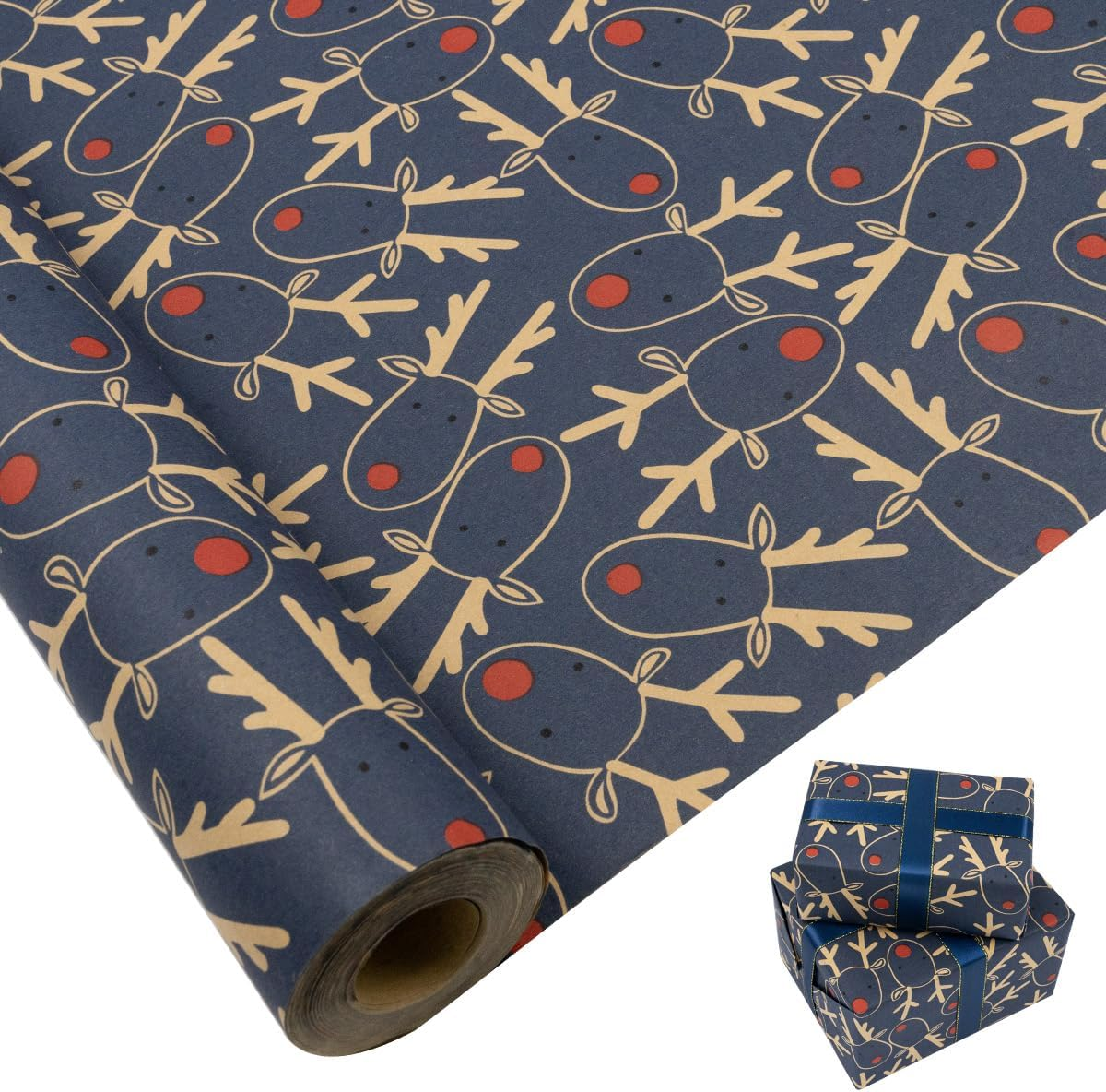Gift Wrapping Paper Roll for Christmas: Blue Kraft Wrapping Paper Festive Elk Pa