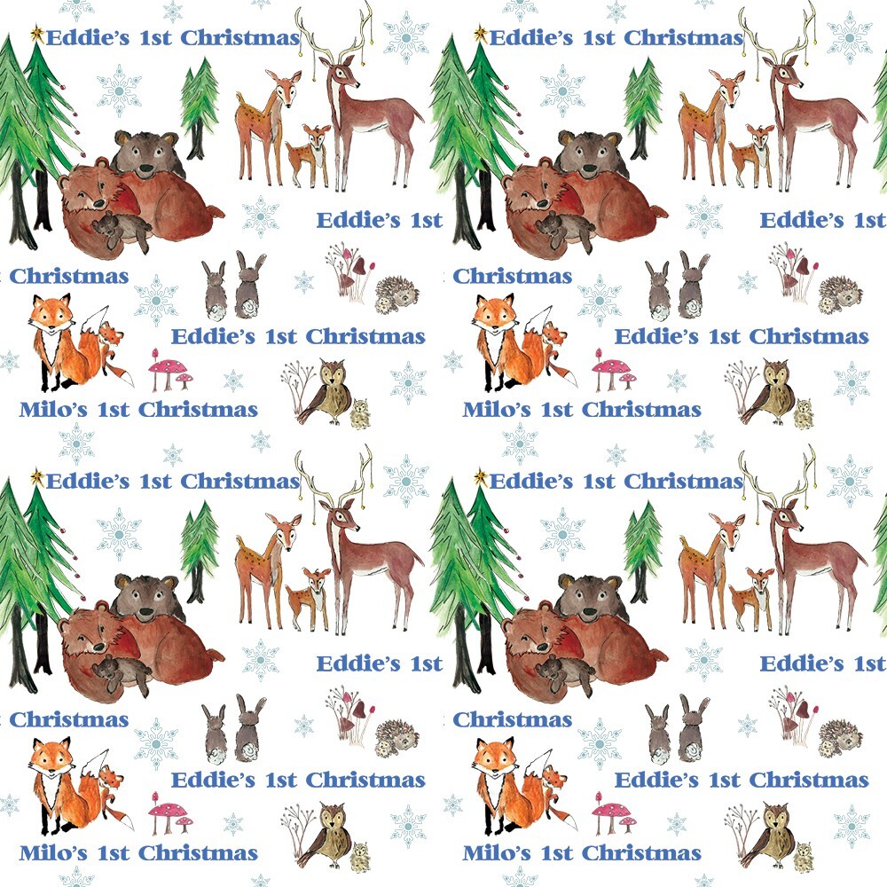 BABYS FIRST 1ST BLUE ELEPHANT SON CHRISTMAS WRAPPING PAPER GIFT WRAP PERSONALISE