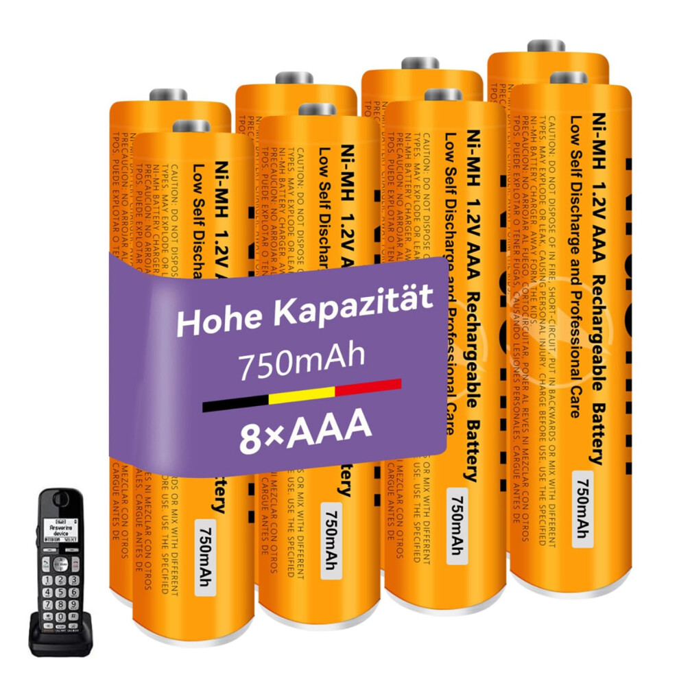 1.2V 750mah NI-MH AAA Rechargeable Battery for Panasonic BT, 8 Pack AAA rechargeable Batteries for Gigaset Cordless Phones