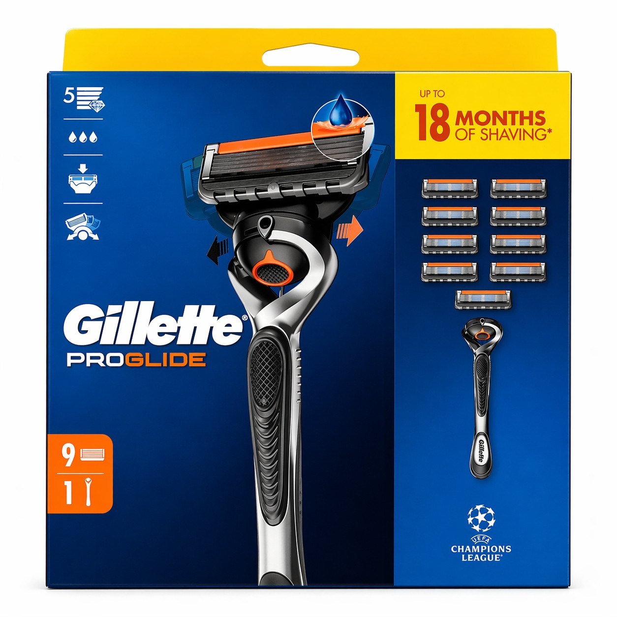 Gillette Proglide Flexball Technology Men’s Razor Handle & 9 Refill Pack 5 Blade