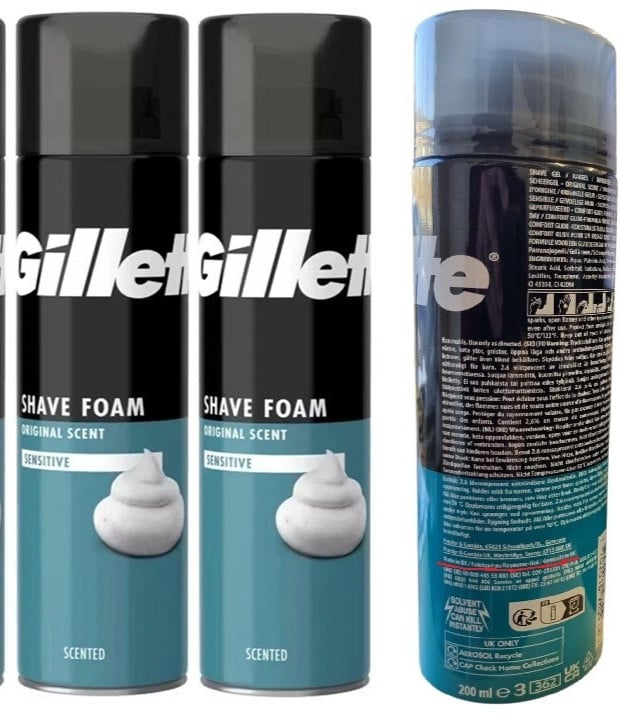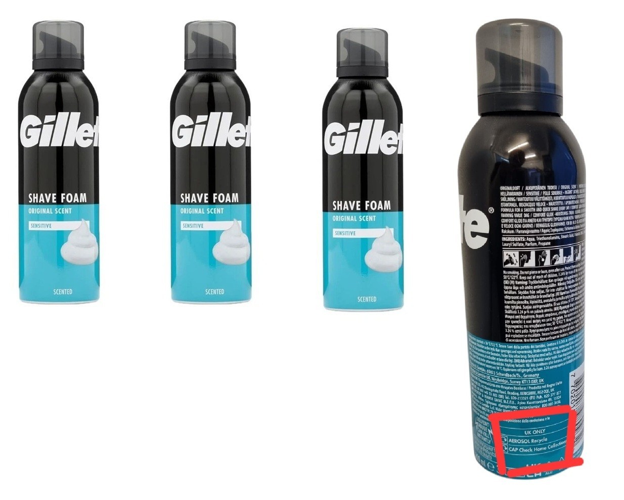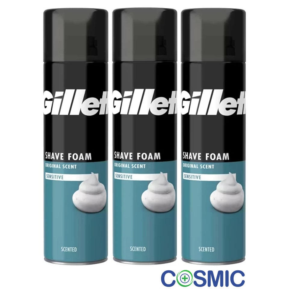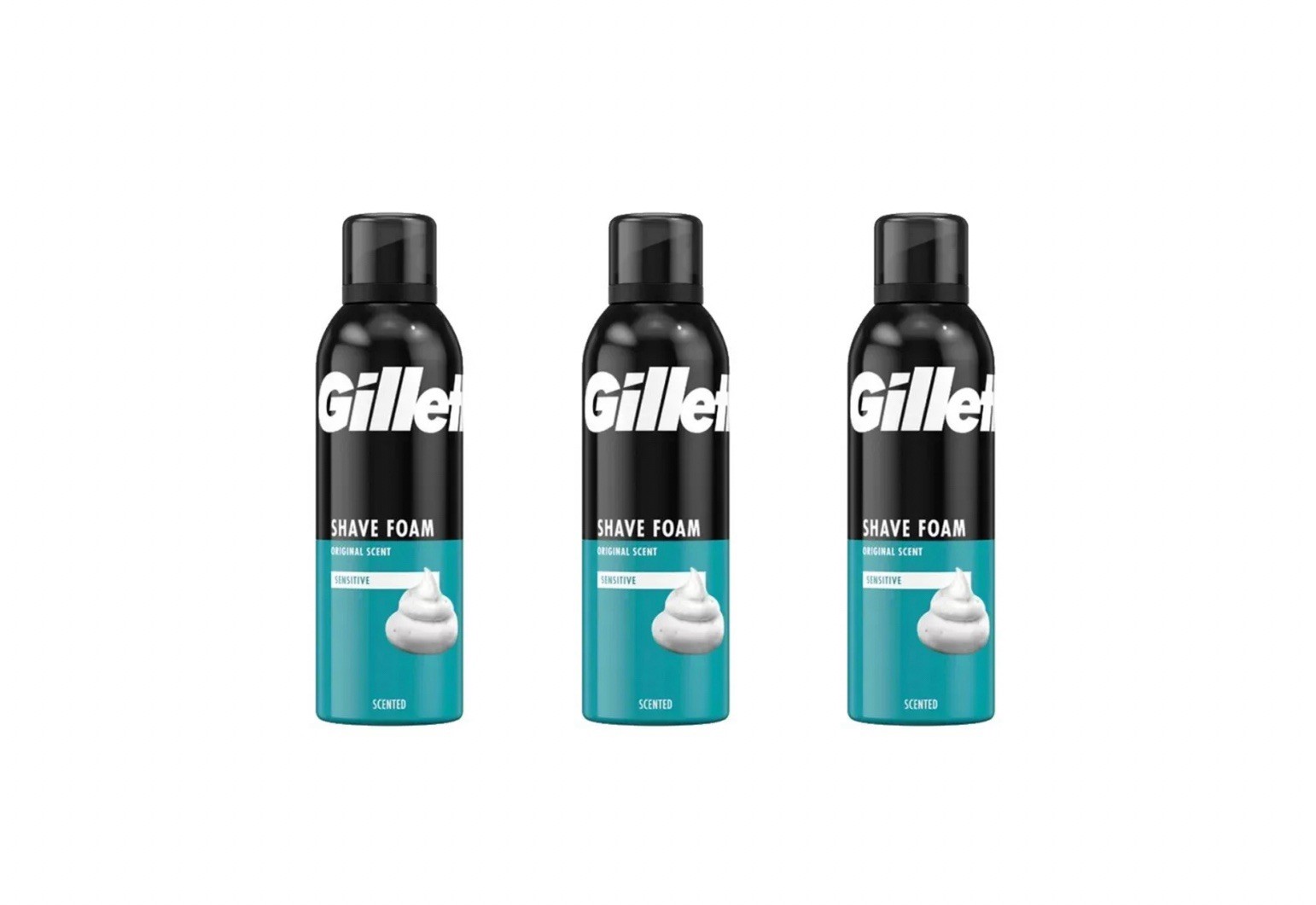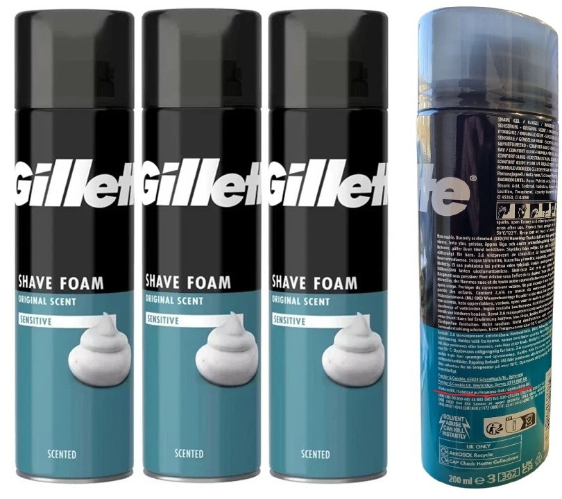 3x Gillete Shaving Foam Sensitive 200ml Scented Free Uk Postage