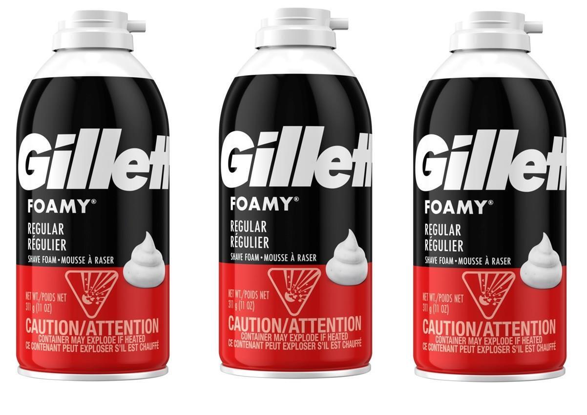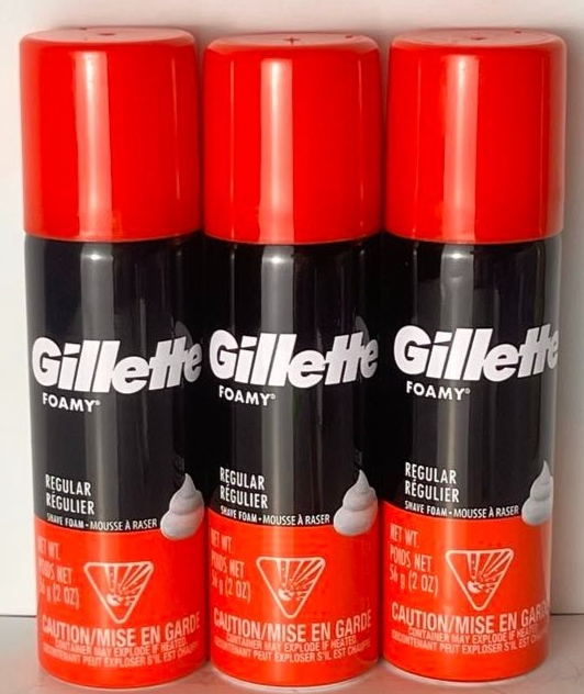 Lot 3-Pack Gillette Foamy Regular Shaving Foam, 2 oz Travel Size - USA Import