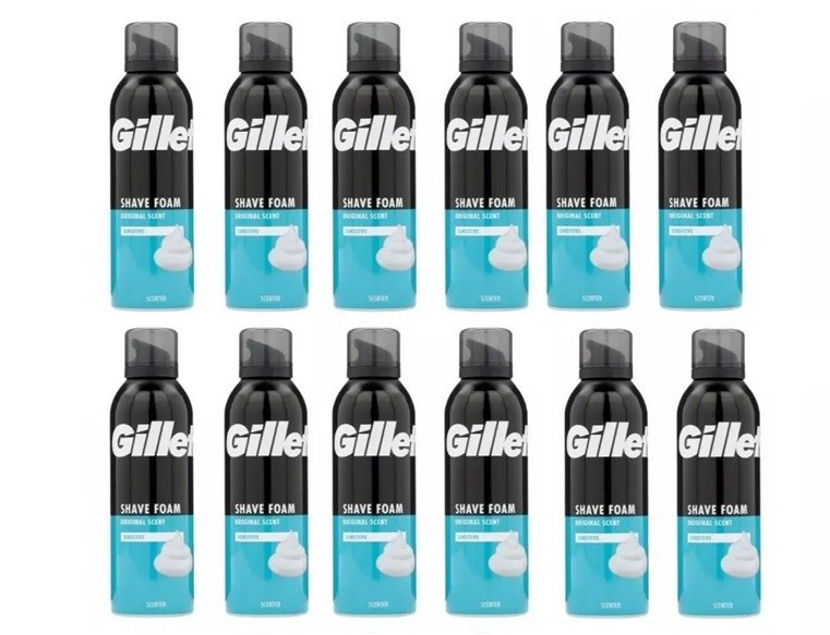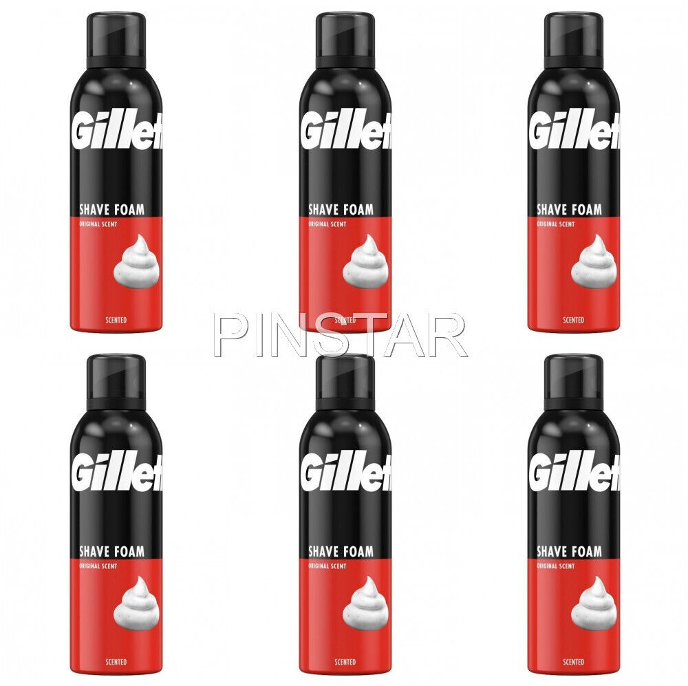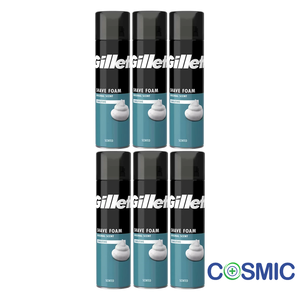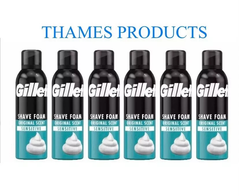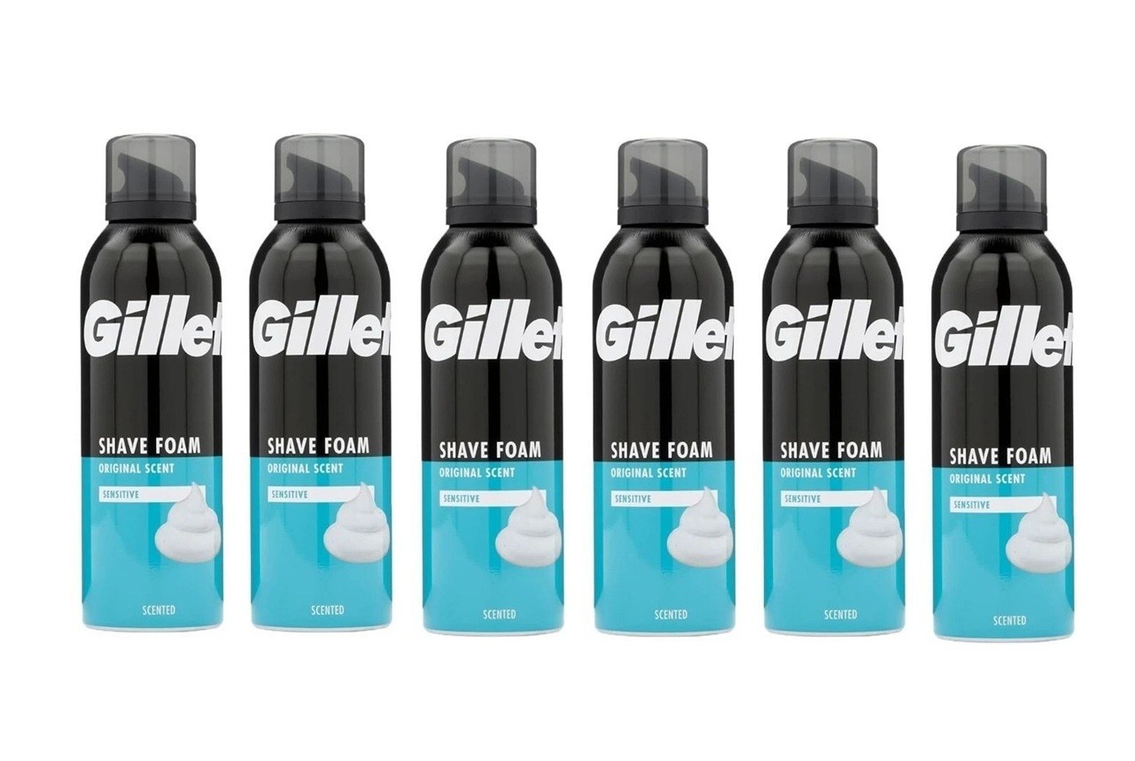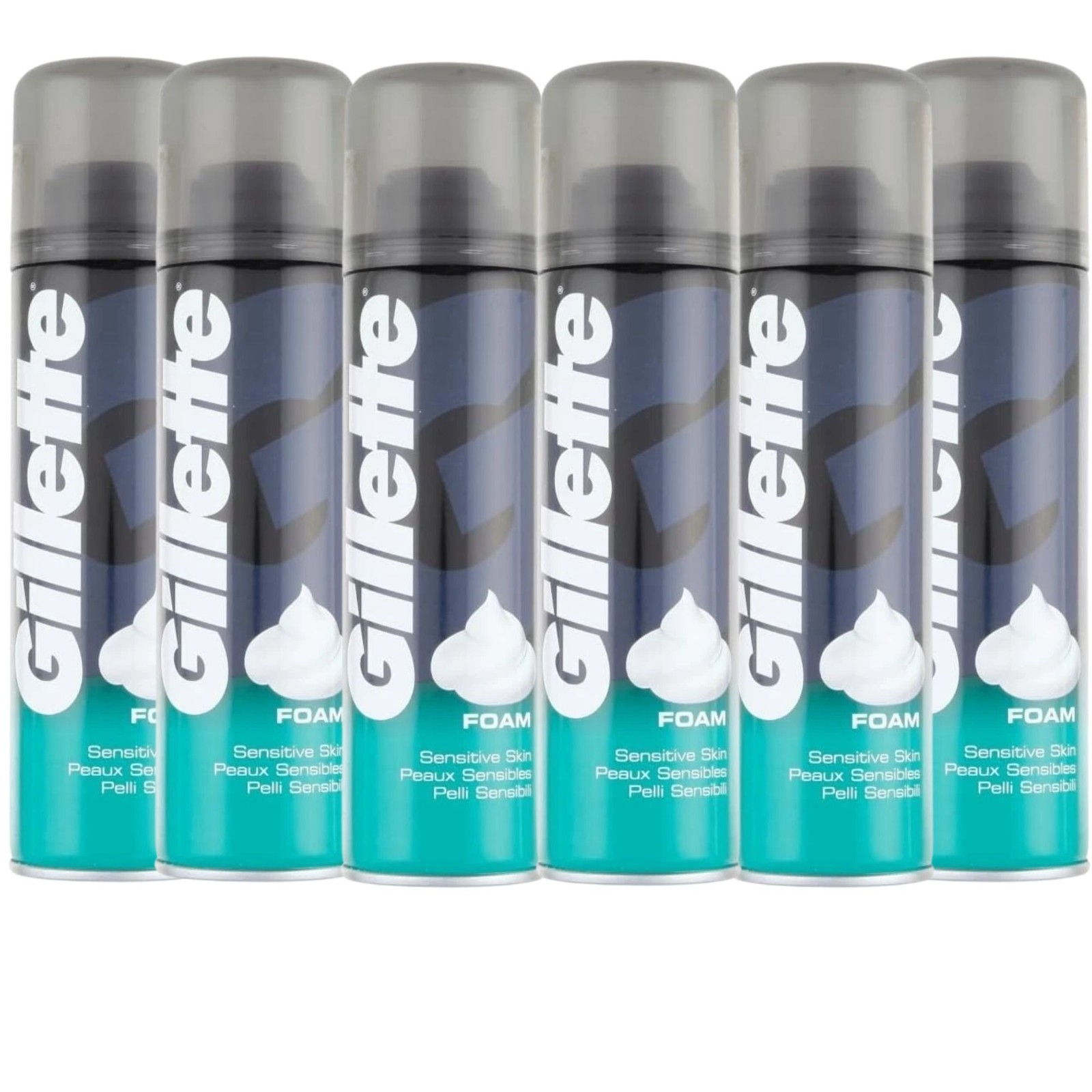 6 x 200ml Gillette Sensitive Skin Shaving Foam. Original Scent.