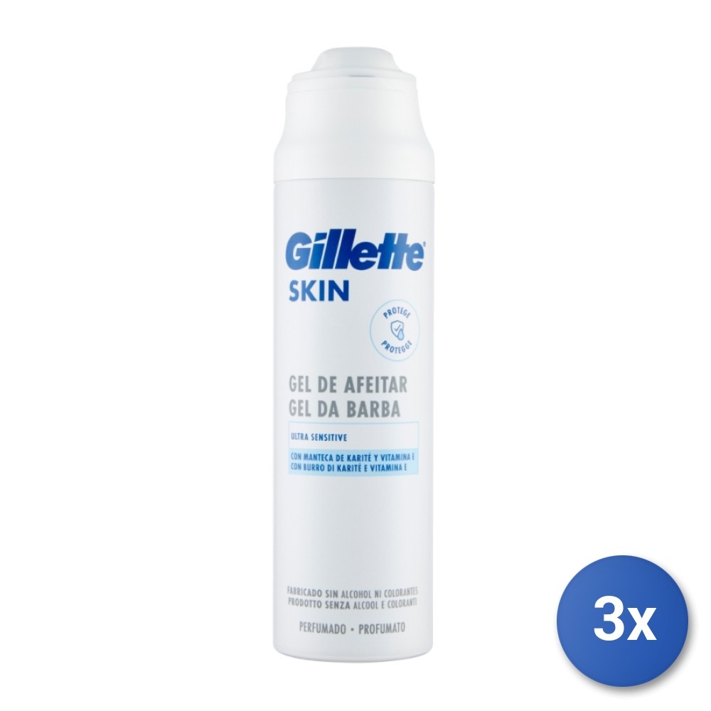 3x Gillette Skin Shaving Foam Gel 200 Ml. Ultra Sensitive