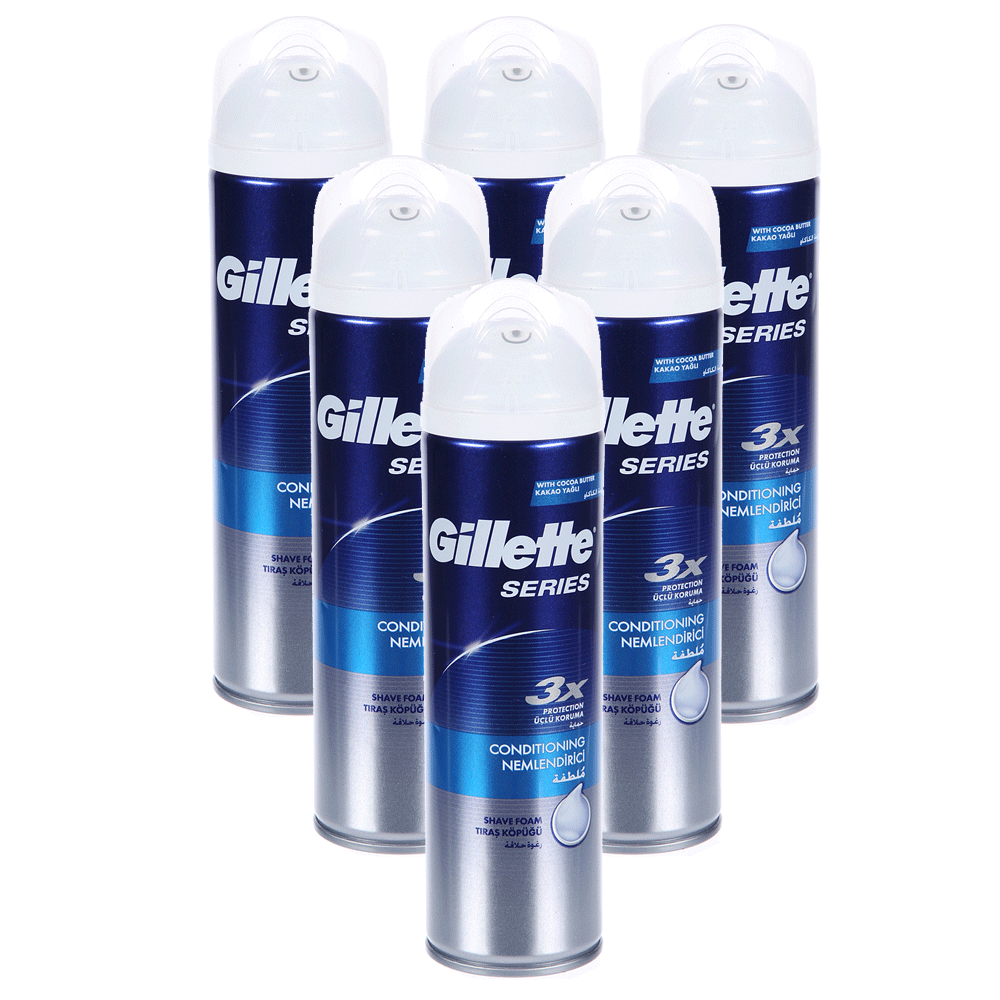 6 x GILLETTE SERIES PROTECTION SHAVE FOAM COCOA BUTTER 250ML EXP 01/22