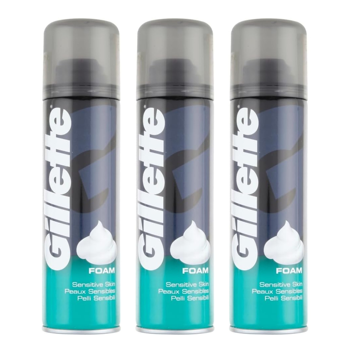3 x GILLETTE SENSITIVE SHAVE FOAM 200ml (3 x 200ml)