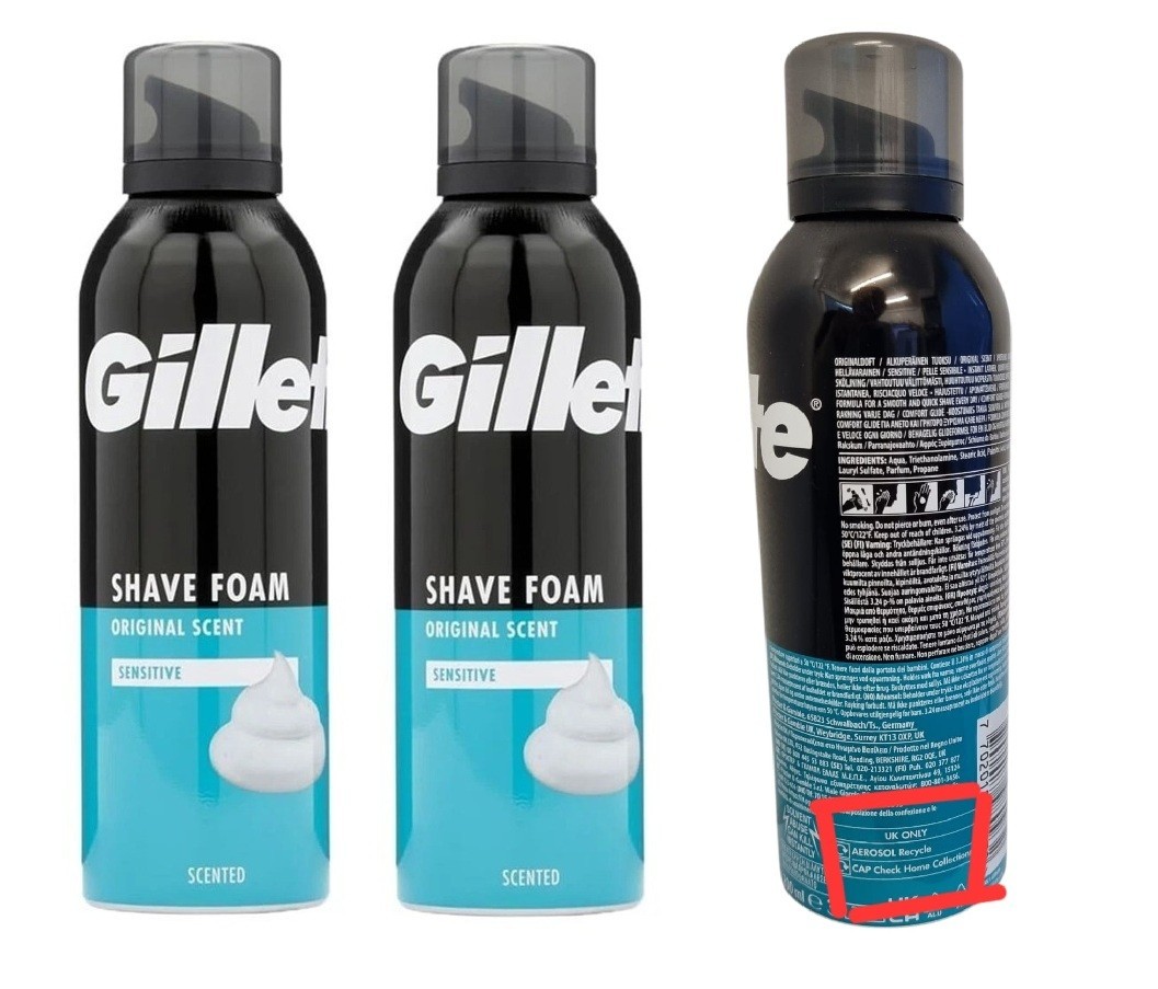 2x GILLETTE Original Scent Sensitive Shave Foam 200ml