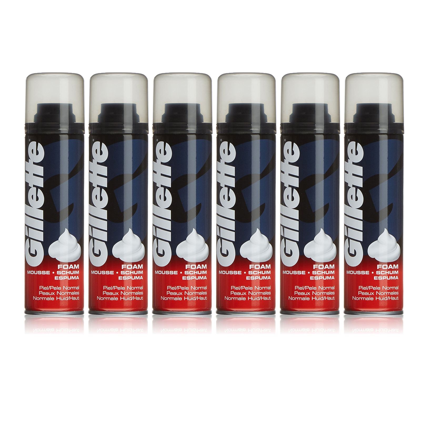 6 Gillette Classic Men's Shaving Foam Sensitive Skin For Smooth Clean 200ml Face