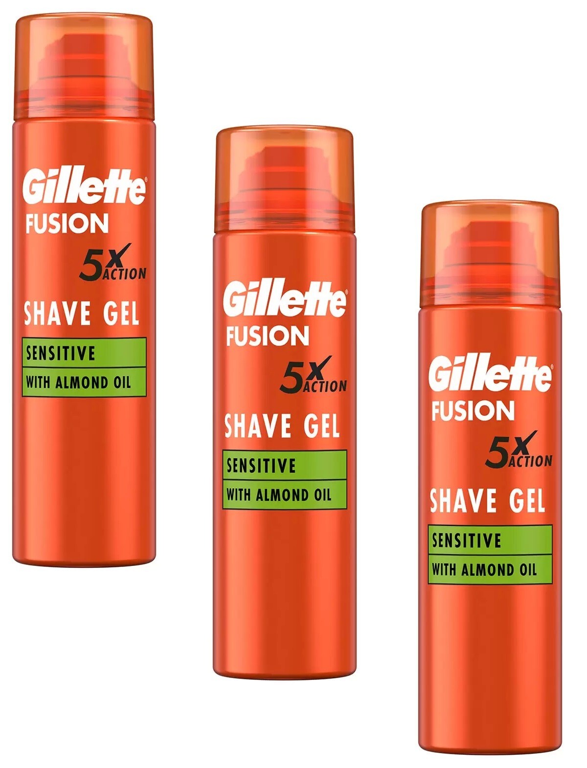 3x Gillette Fusion 5 Ultra Shave Gel Sensitive With Almond Oil 75ML