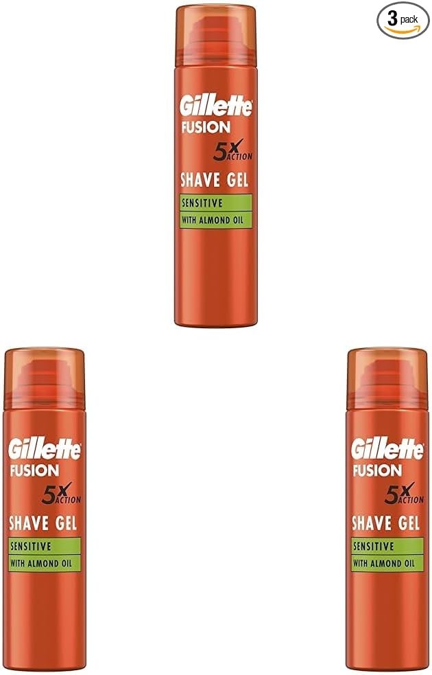 3x 200 ml Gillette Fusion5X Ultra Sensitive Shaving Gel with Almond Oil for Men-