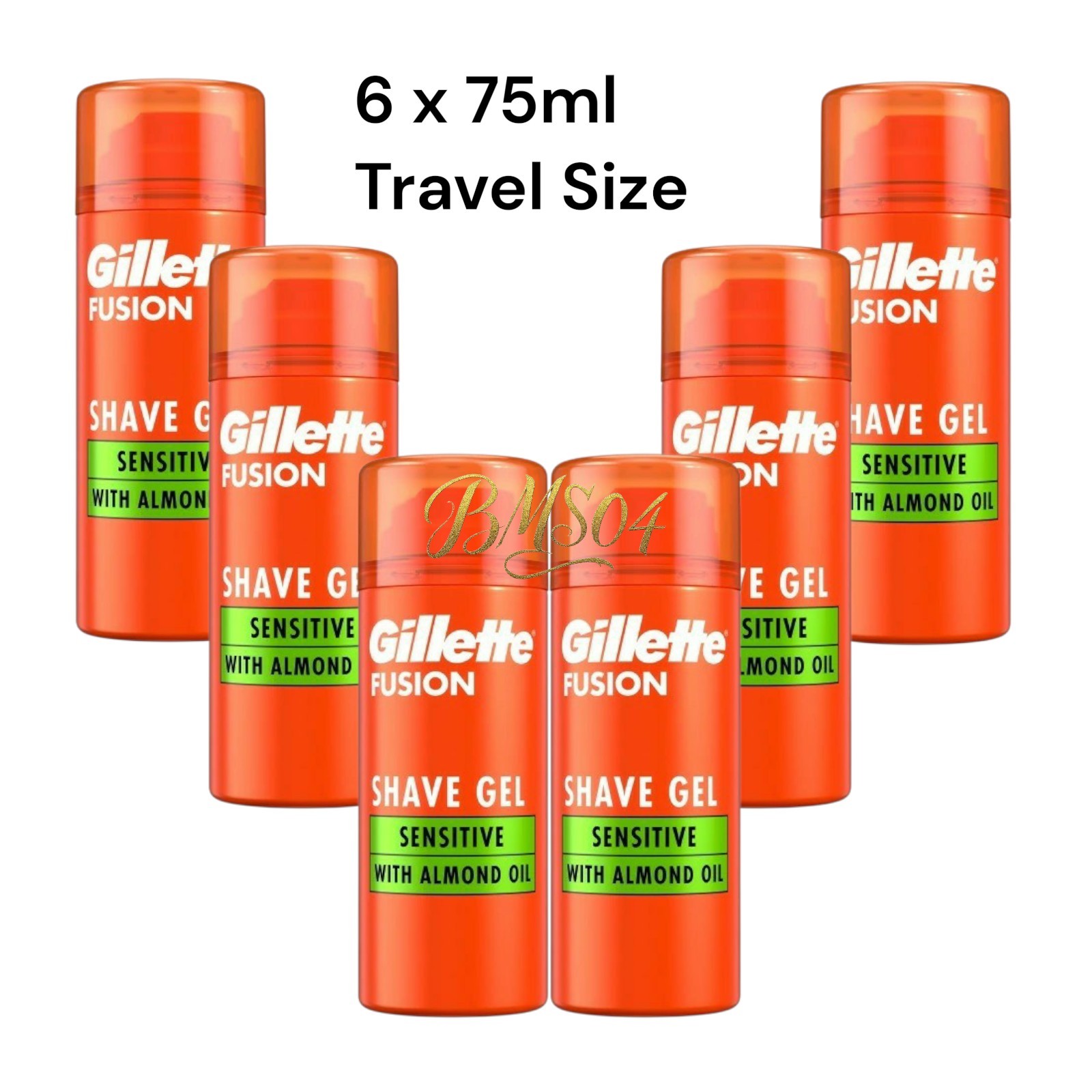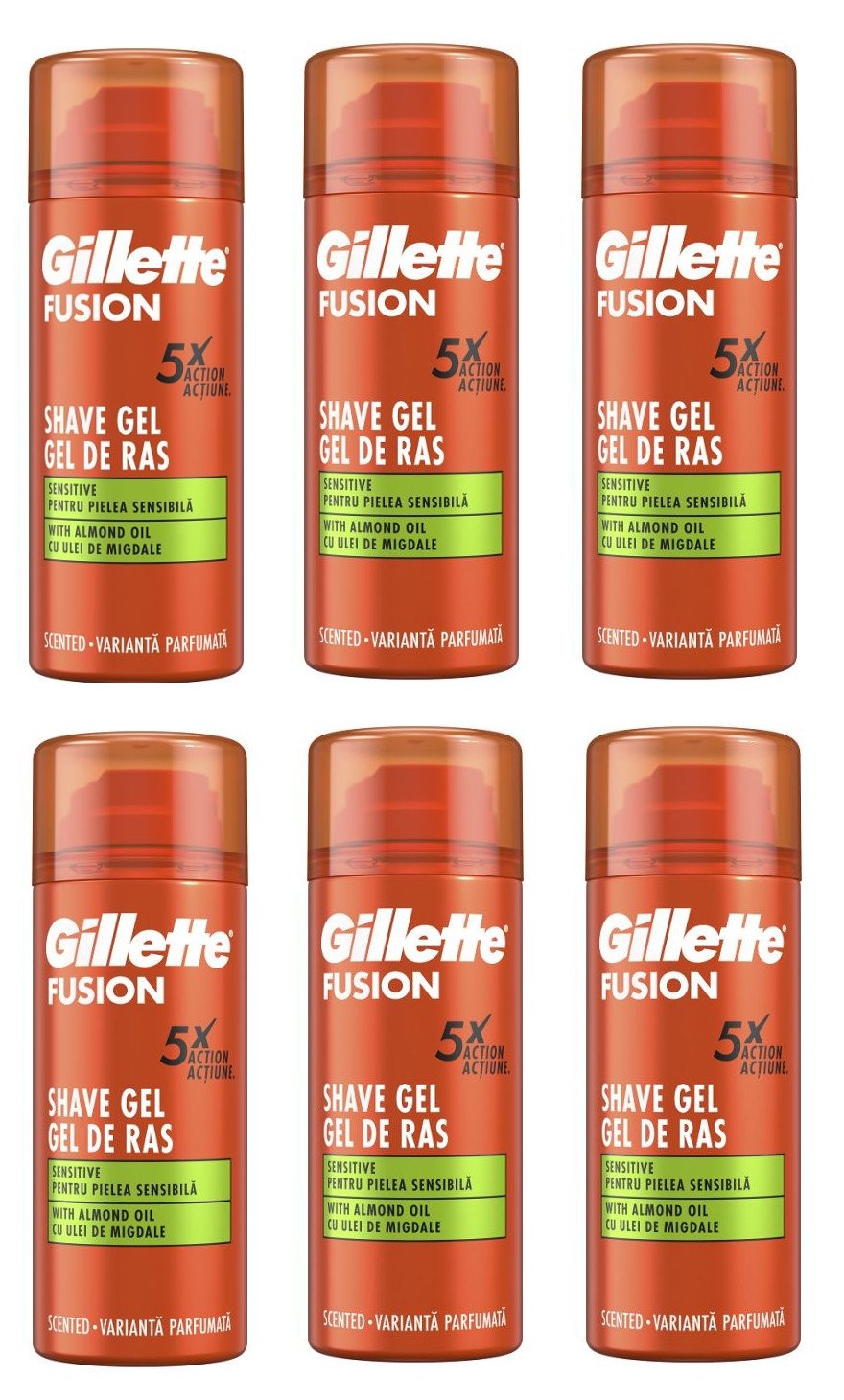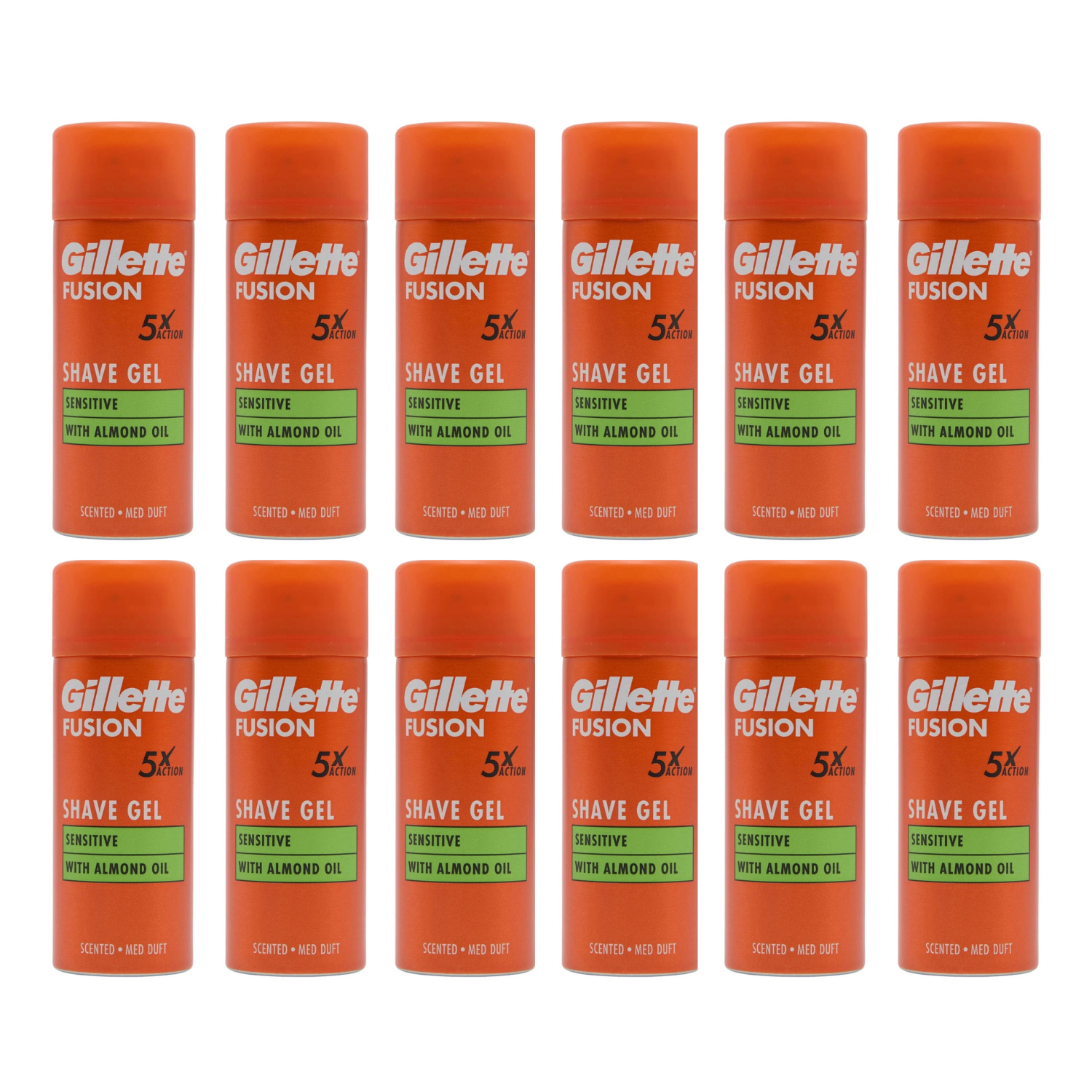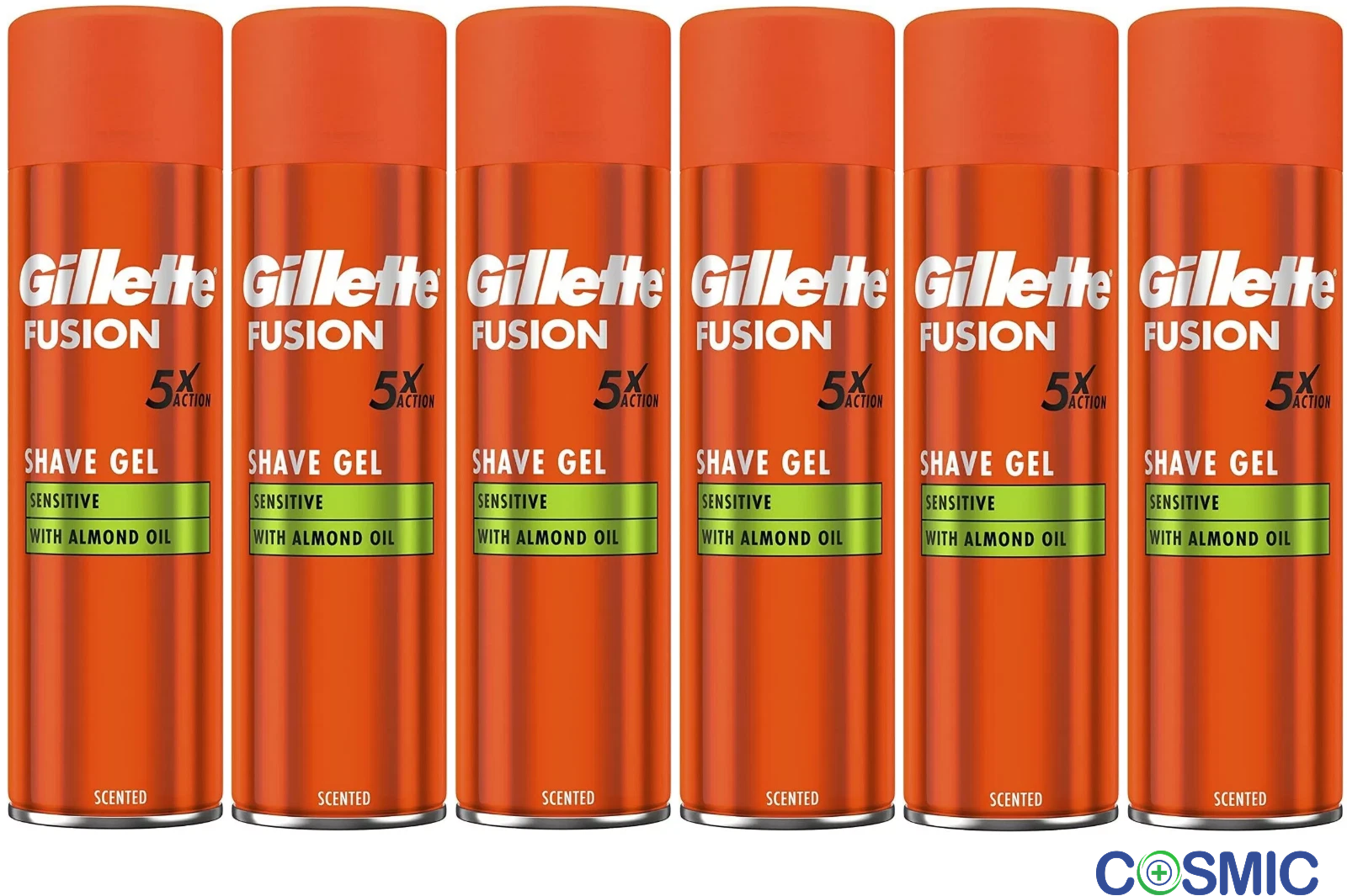6 x Gillette Shave Gel Fusion 5 Sensitive 75ML With Almond Oil - Sensitive Skin