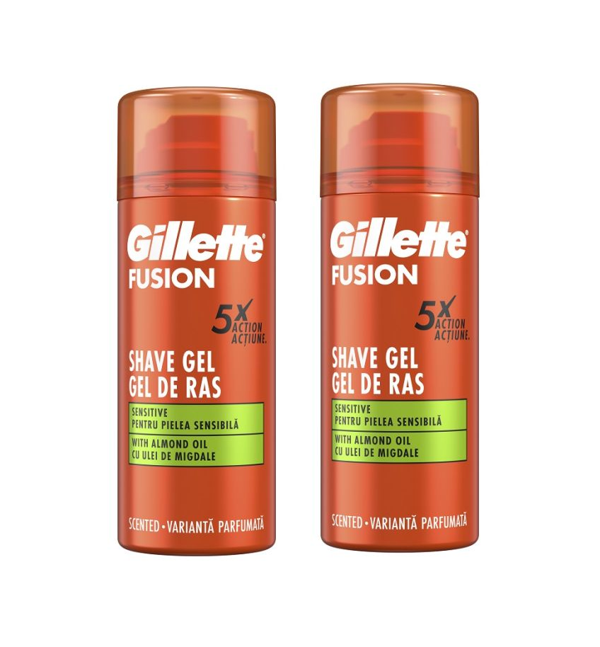 2 x Gillette Fusion 5x Action Sensitive Men's Shaving Gel With Almond Oil 200ml