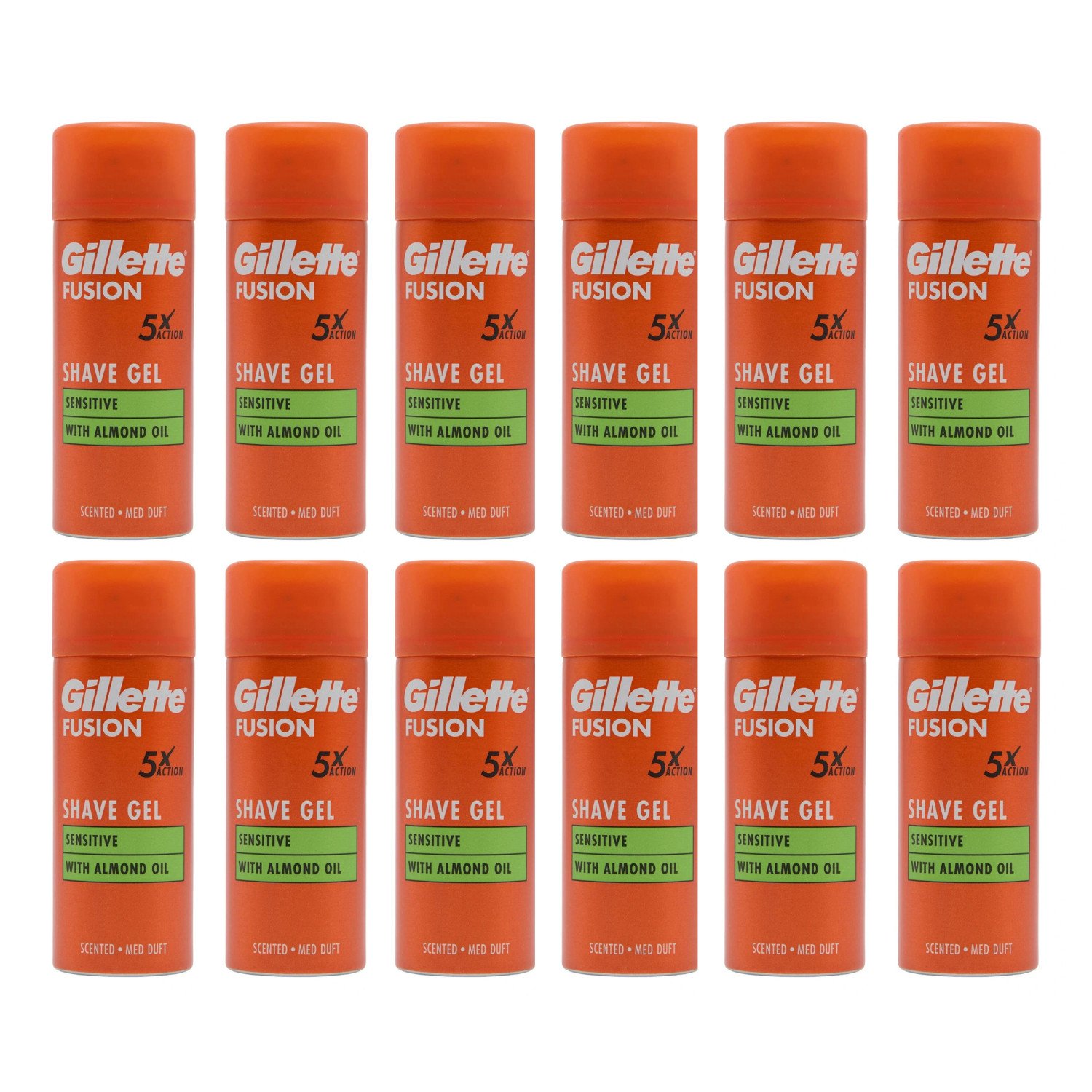 Gillette Fusion Shave Gel for Men with Almond Oil, For Sensitive Skin, 5X Action: Cleanses, Hydrates, Protects, Refreshes, and Soothes, 6x200ml