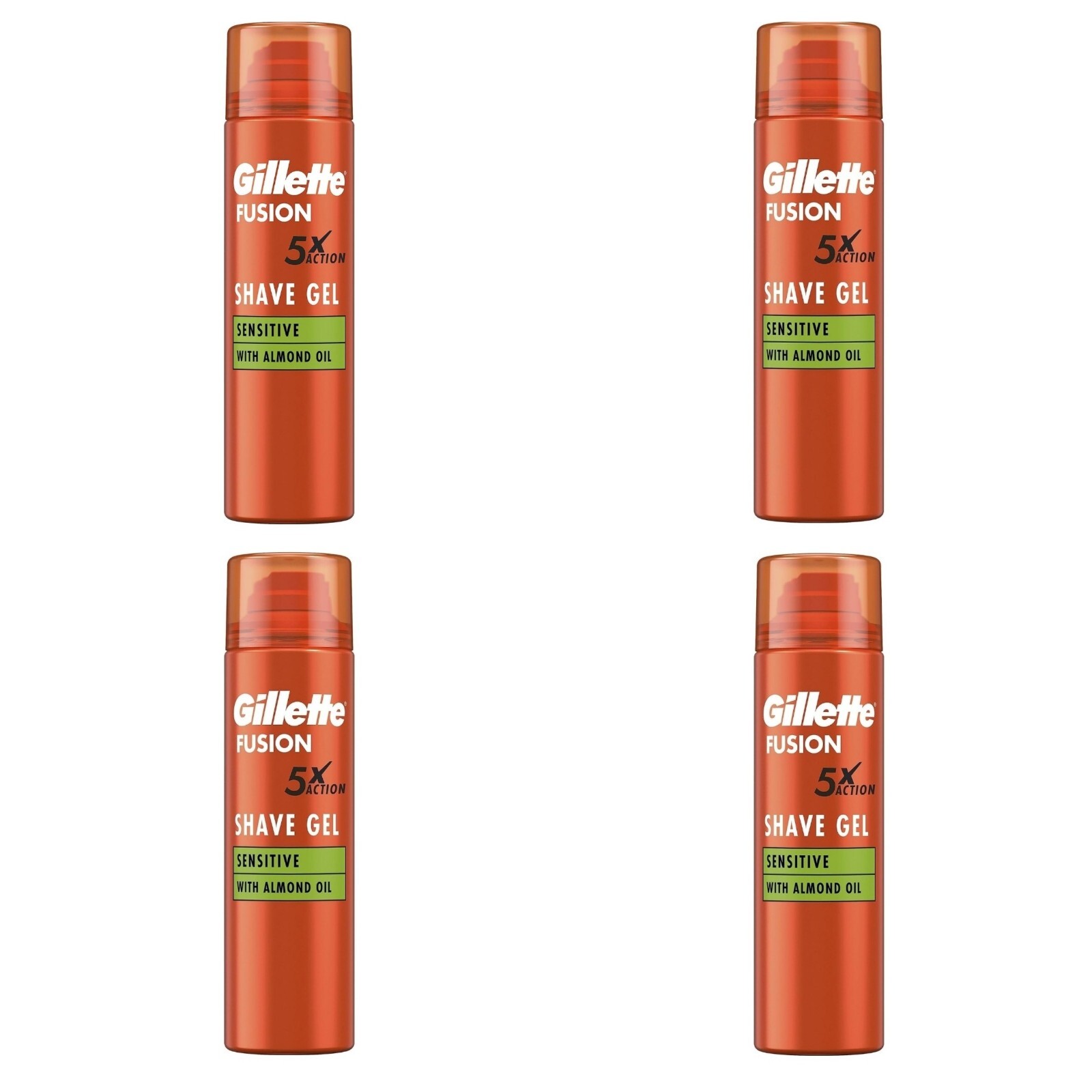 4 x Gillette Fusion 5X Action Sensitive Men's Shaving Gel With Almond Oil 200ml