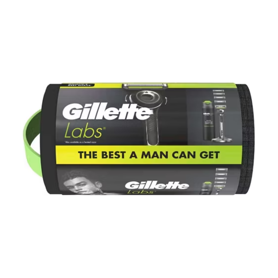 Gillette Labs with Exfoliating Bar Men’s Razor + 4 Blades and Shave Gel Washbag Gift Set - New