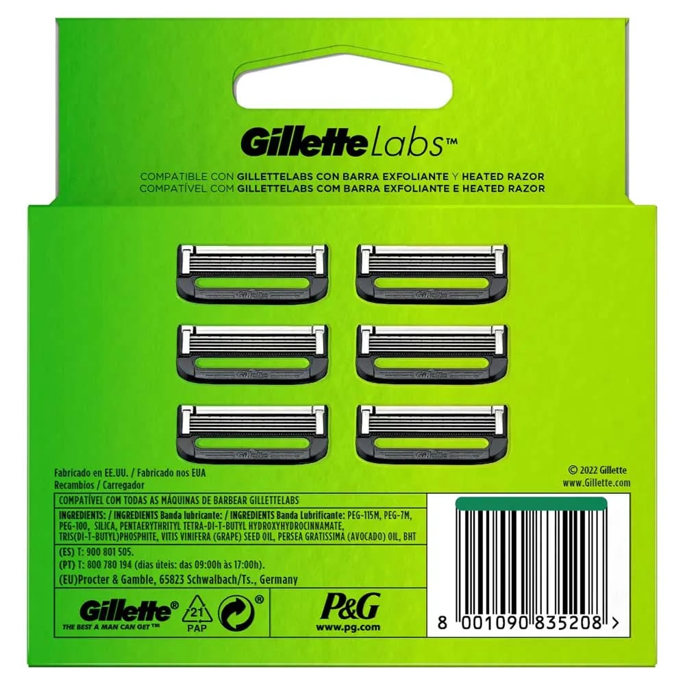 Gillette Labs with Exfoliating Bar Razor Refills for Men 6 Blade and 7oz Rapid Foaming Shave Gel