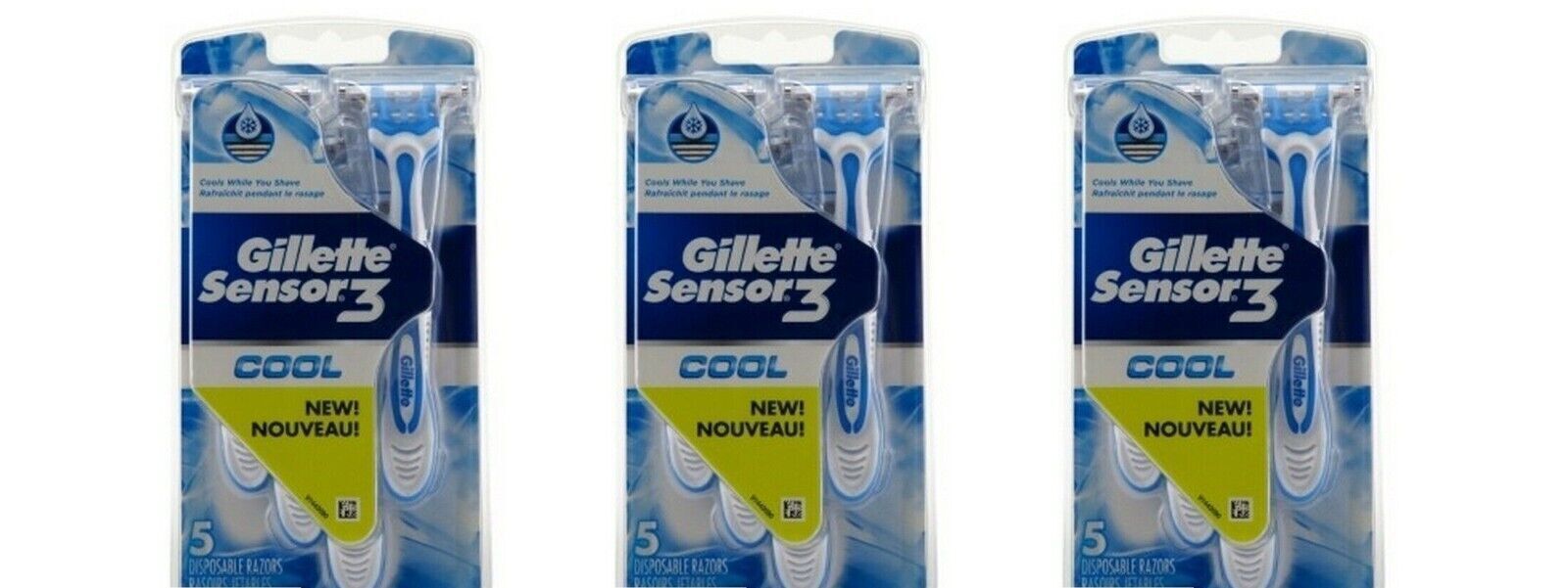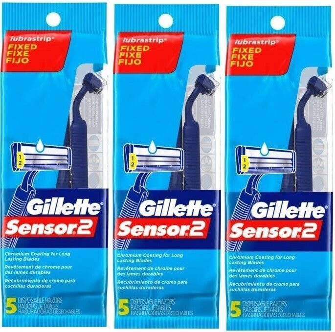BL Gillette Mens Sensor 3 Razor Disposable 5 Count Cool - THREE PACK