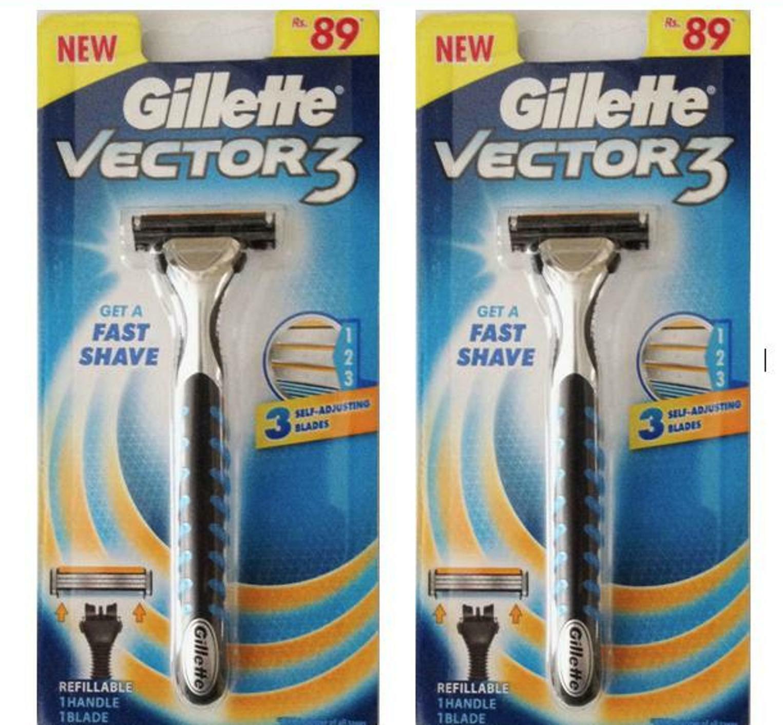 Gillette Vector 3 Razor Lot of Two Handle Sensor Sensor Excel 2 Cartridges FShip