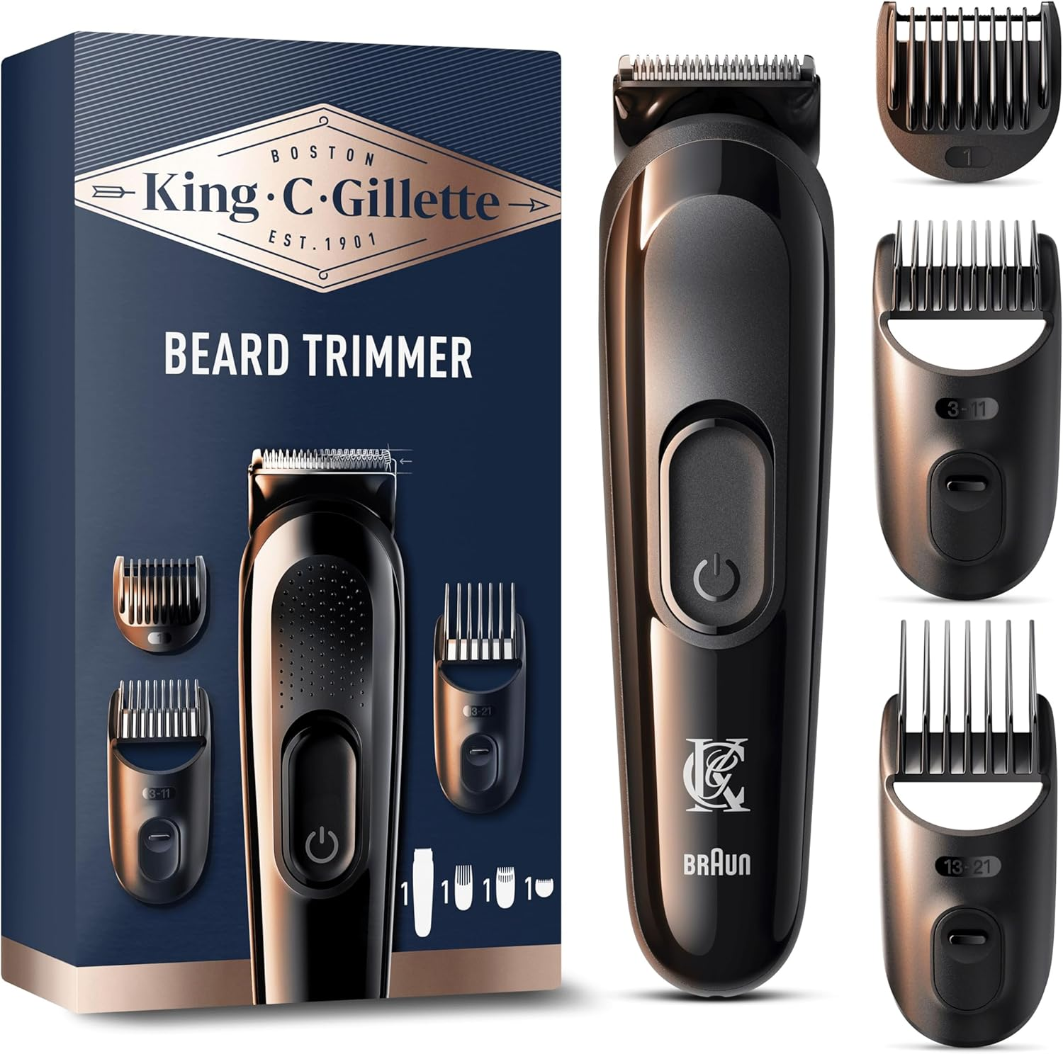 King C. Gillette Cordless Beard Trimmer with 3 Comb Attachments (1mm, 3-11mm, 13-21mm) for All Beards | 50-Minute Battery
