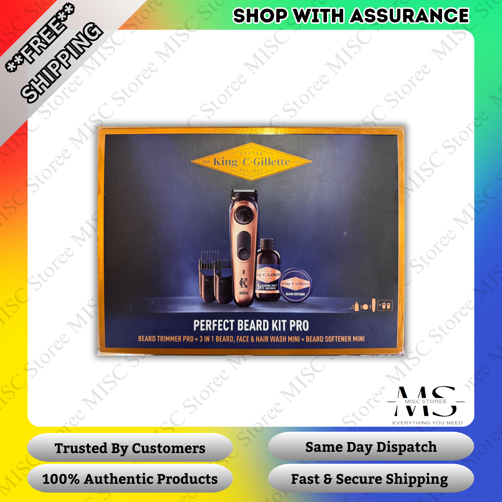 King C. Gillette Beard Trimmer Pro Gold and Beard Care Gift Set