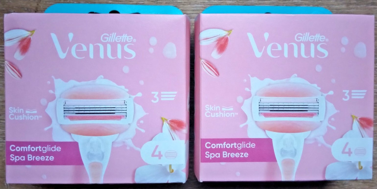 2x Gillette Venus ComfortGlide Spa Breeze 4 Packs of Refill Cartridges. 8 cart.
