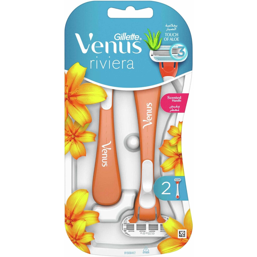 Gillette Venus Riviera Women's Disposable Razor 2Pcs | MoistureRich Aloe Strips, Fresh-Scented, Non-Slip & Ergonomic Handle for Smooth Shave