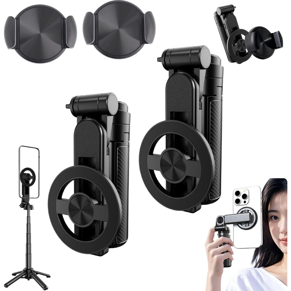 2-Pack 2-in-1 Magnetic Selfie Stick w/ Bluetooth Remote, Retractable Tripod & 360 Rotating Gimbal, compatible with iPhone and Android