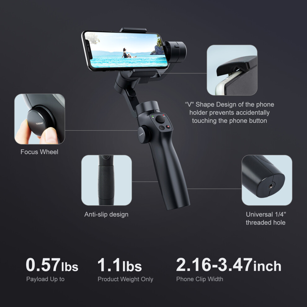 3-Axis Smartphone Foldable Handheld Gimbal Stabilizer with Focus Wheel for iPhone Android