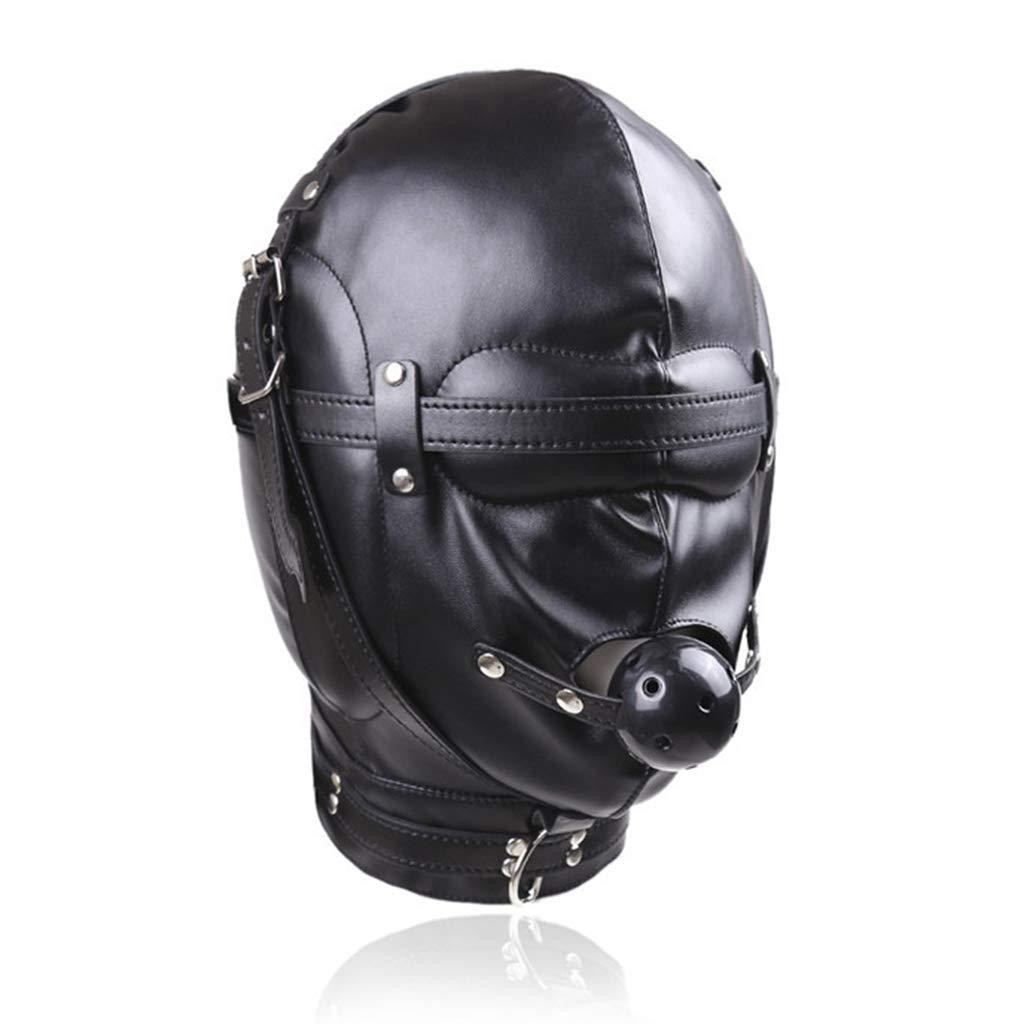 Black PU Leather Mouth Gag Plug & Fetish Mask - Costume Adult Head Gimp Mask