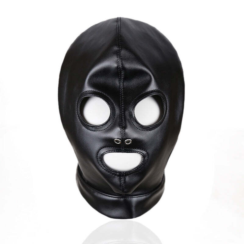 Black Faux Leather Gimp Mask Costume with Mouth and Eye Holes for Men and Women