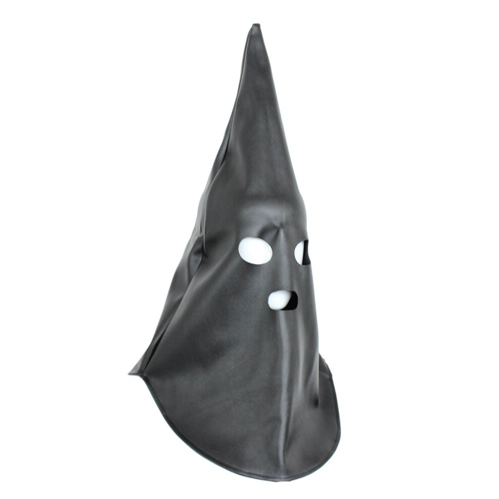 Black Leather Gimp Mask Knight Hood Costume Headpiece for Cosplay, Festivals, and Role Play